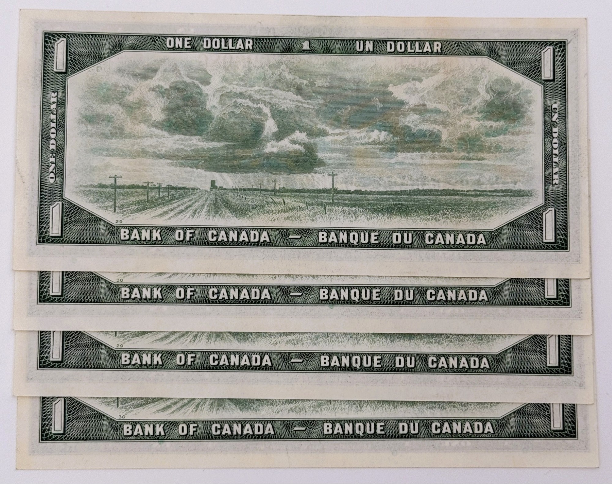 Banque du Canada – 1 Dollar 1954 – 4 Consécutifs – Beattie/Rasminski – Préfixe N/M– UNC