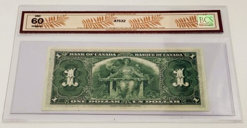 Émis dans le cadre de la série multicolore de 1954, ce billet de 1 Dollar présente au recto le portrait de la reine Elizabeth II, symbole de modernité et de continuité monarchique, et au verso une vue emblématique des Prairies canadiennes, illustrant l’immensité et la richesse agricole du pays. Portant les signatures de Lawson et Bouey et le préfixe E/I, ces deux exemplaires se distinguent par leur cohérence historique et leur état Uncirculated (UNC), avec papier intact, couleurs éclatantes et détails parfaitement nets. Leur attrait est renforcé par le fait qu’ils forment une séquence de 2 billets consécutifs, ajoutant une continuité appréciée par les collectionneurs. Véritable ensemble patrimonial, ce duo conjugue prestige, authenticité et rareté, séduisant autant par la qualité de conservation que par la singularité de leurs numéros alignés.