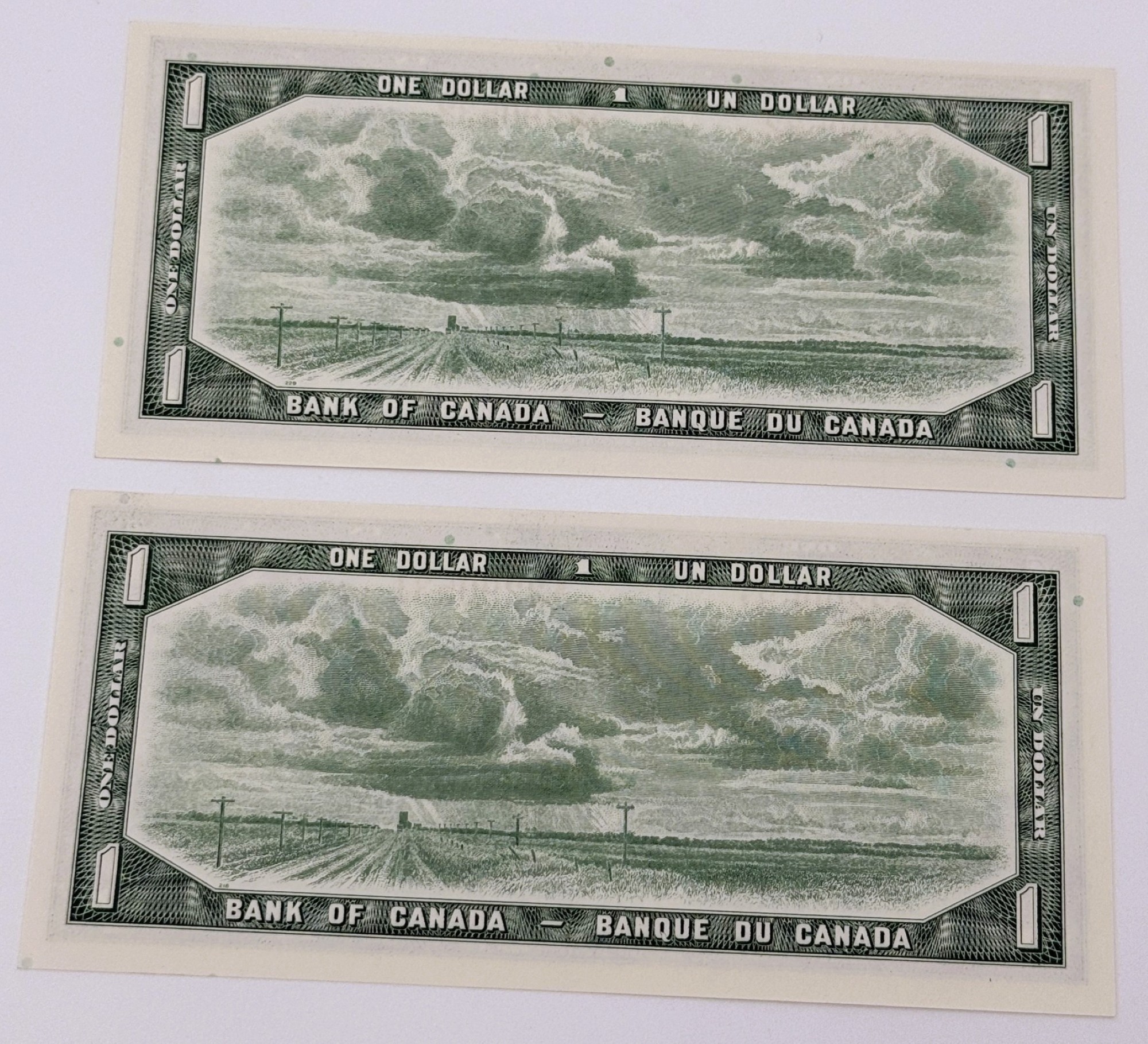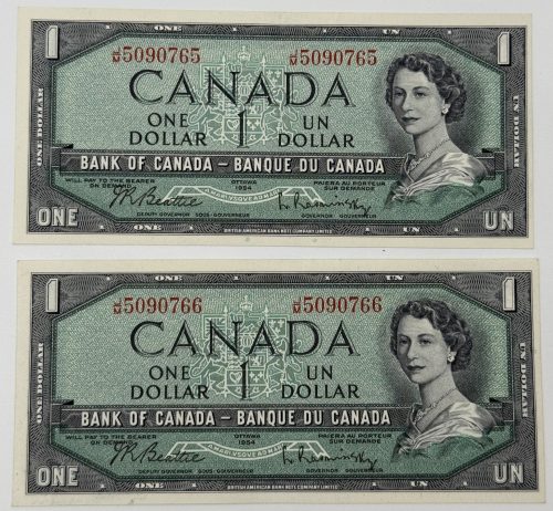 Banque du Canada – 1 Dollar 1954 – 2 Consécutifs – Lawson/Bouey – Préfixe E/I – UNC