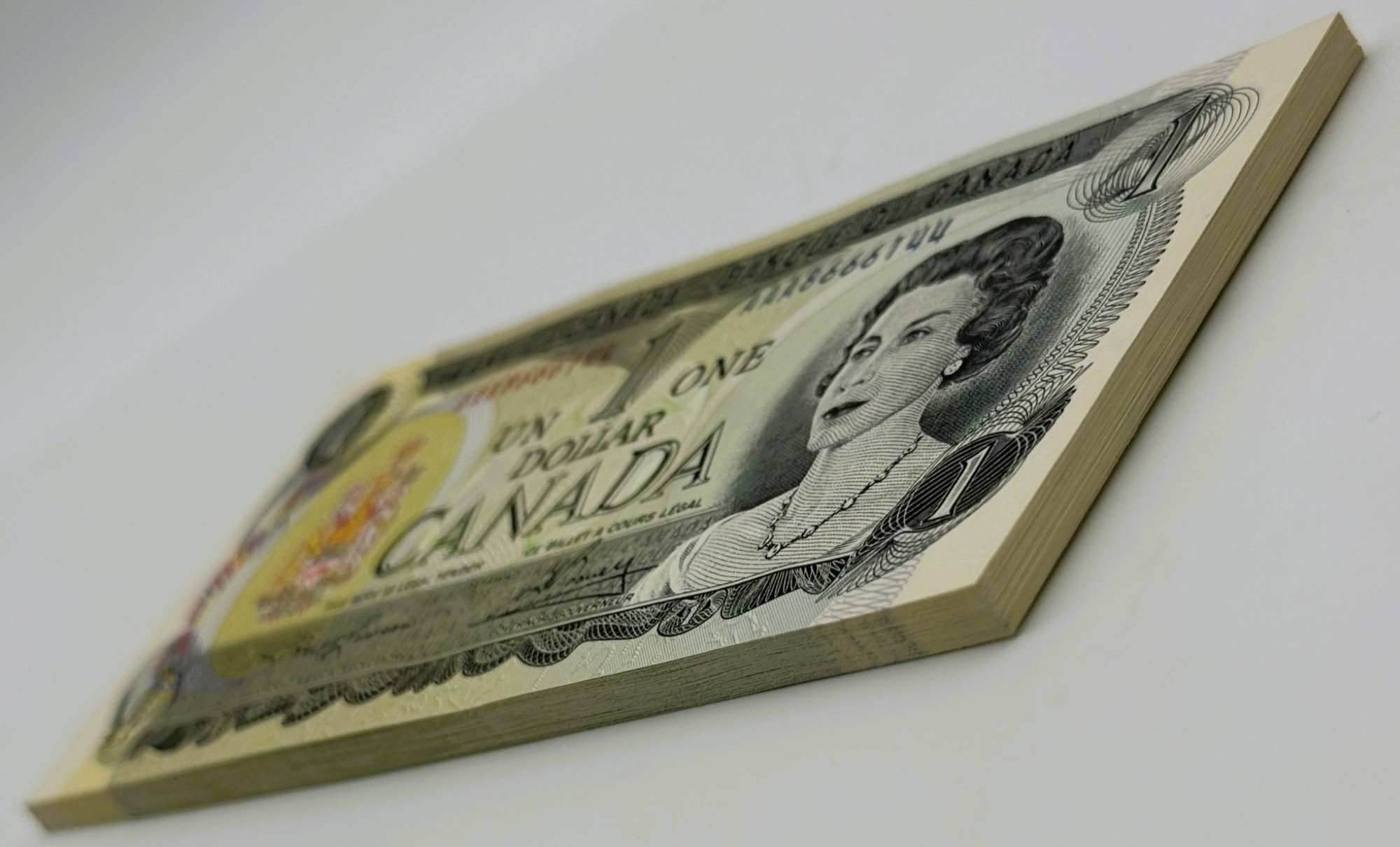 Émis dans le cadre de la série multicolore de 1973, ce billet de 1 Dollar présente au recto le portrait de la reine Elizabeth II, symbole de continuité monarchique, et au verso une gravure de la colline du Parlement et de la ville d’Ottawa vues depuis la rivière des Outaouais, mettant en valeur le cœur institutionnel du pays et sa capitale nationale. Portant les signatures de Lawson et Bouey, ces exemplaires se distinguent par leur état Uncirculated (UNC), avec papier intact, couleurs éclatantes et détails parfaitement nets. Leur attrait est sublimé par le fait qu’ils forment une séquence exceptionnelle de 35 billets consécutifs, une continuité rarissime qui confère à l’ensemble une valeur patrimoniale hors du commun. De plus, le préfixe AAA, tout premier de la série, accentue encore la singularité et l’importance historique de ce lot. Véritable ensemble institutionnel et fondateur, il conjugue prestige, authenticité et rareté, séduisant autant par la qualité de conservation que par l’alignement impressionnant de leurs numéros, témoignage tangible d’une préservation remarquable.