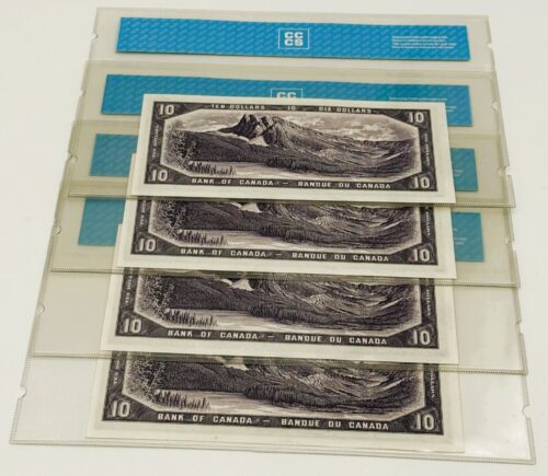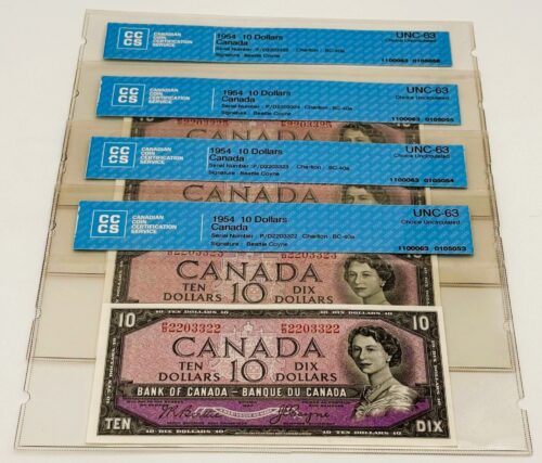 Émis dans la première série complète de la Banque du Canada, ce billet de 10 Dollars 1937 incarne la jeunesse institutionnelle de la banque centrale, fondée et opérationnelle dès 1935. Le recto présente le portrait du roi George VI, symbole de continuité monarchique et de stabilité à la veille de la Seconde Guerre mondiale, encadré par un décor ornemental riche et solennel. Le verso illustre une allégorie du Commerce, avec le dieu grec Mercure se tenant devant un piédestal, accompagné d’un globe terrestre et de divers moyens de transport modernes en arrière-plan, célébrant la puissance des échanges et l’ouverture économique du Canada. Portant les signatures de Coyne et Towers et le préfixe MT, cet exemplaire certifié EF40 présente une qualité appréciable : usure modérée mais détails nets et couleurs encore bien présents, offrant toute la force de son design original. Ce billet conjugue authenticité, prestige patrimonial et rareté, séduisant autant par son état préservé que par la force narrative de son iconographie institutionnelle.