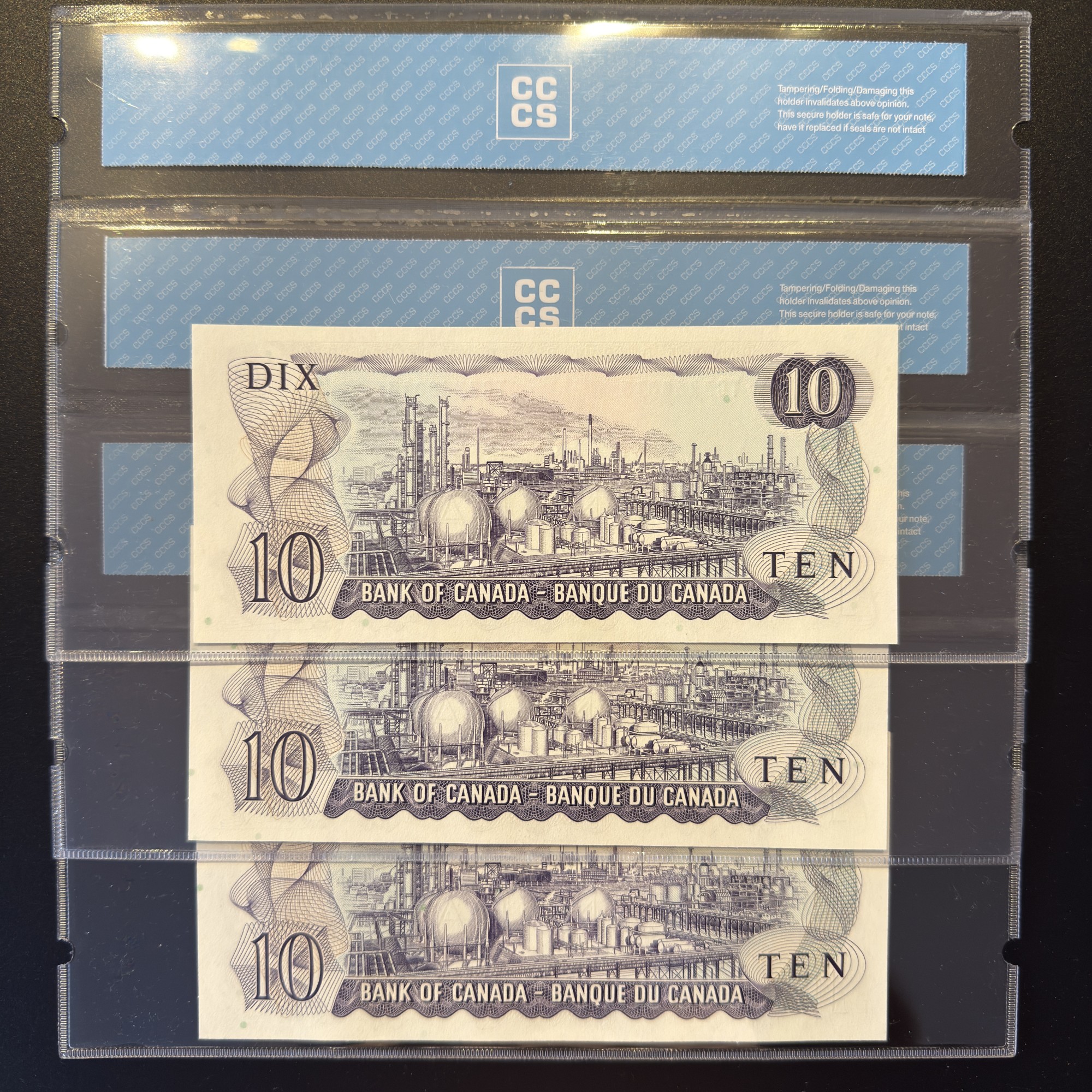 Banque du Canada – 10 Dollars 1971 – 3 Consécutifs – Lawson/Bouey – Préfixe TC – UNC64 – BC-49c
