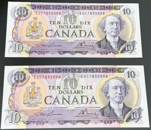 Issu du programme de remplacement de la série de 1971, ce billet de 10 dollars porte le préfixe distinctif EDX, réservé aux émissions substitutives destinées à remplacer les billets défectueux lors du processus d’impression. Signé par Crow (Sous-gouverneur) et Bouey (Gouverneur), il présente le portrait gravé de Sir John A. Macdonald, figure fondatrice de la Confédération canadienne. Classé Extremely Fine 40, ce billet conserve une structure solide et une lisibilité intacte, malgré des signes modérés de circulation. Il se distingue par son verso imprimé selon le procédé Litho Back, une variante technique moins fréquente qui confère à l’image — représentant les installations de la Société Polymer Limitée à Sarnia, Ontario — une texture visuelle particulière. Cette combinaison de remplacement, rareté technique et état conservé fait de ce billet une pièce recherchée, à la croisée de l’histoire fiduciaire et de l’innovation industrielle.
