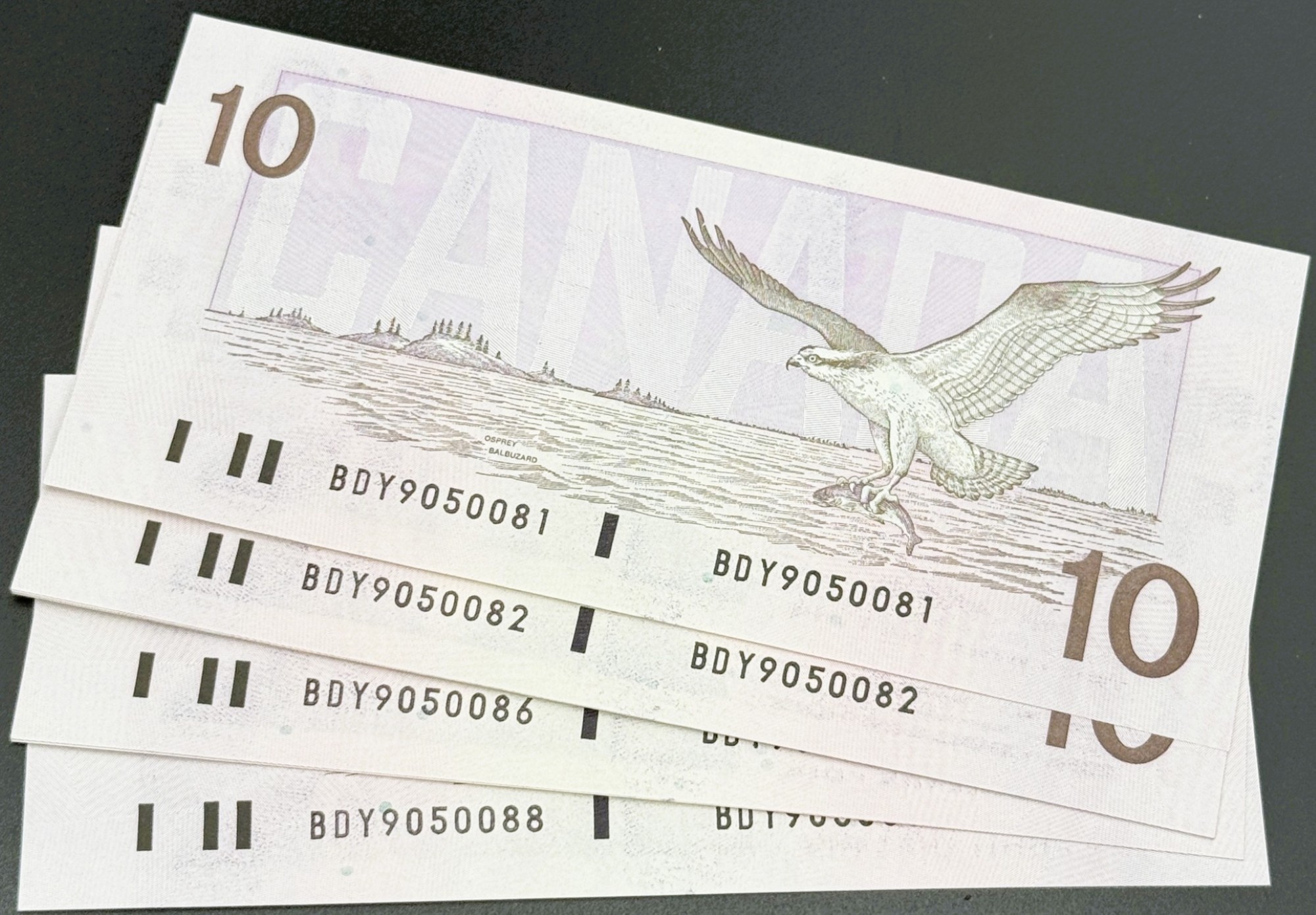 Banque du Canada – 10 Dollars 1989 – 8 Consécutifs – Bonin/Thiessen – Préfixe BDY – UNC