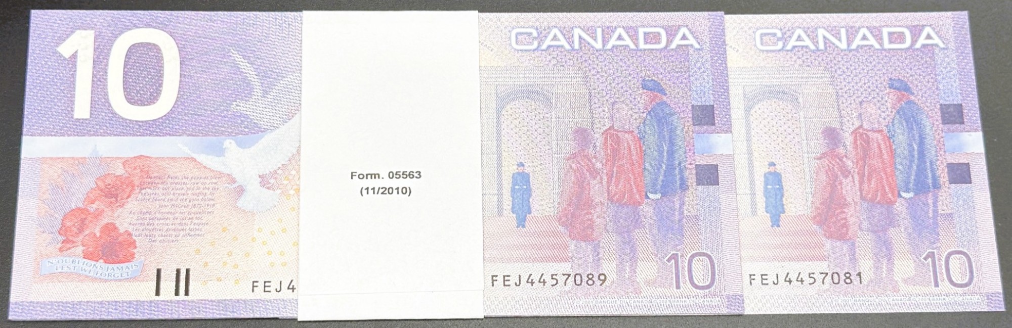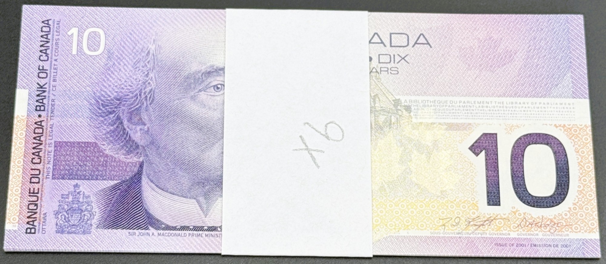 Banque du Canada – 10 Dollars 2001 – 9 Consécutifs – Knight/Dodge – Préfixe FEJ – UNC