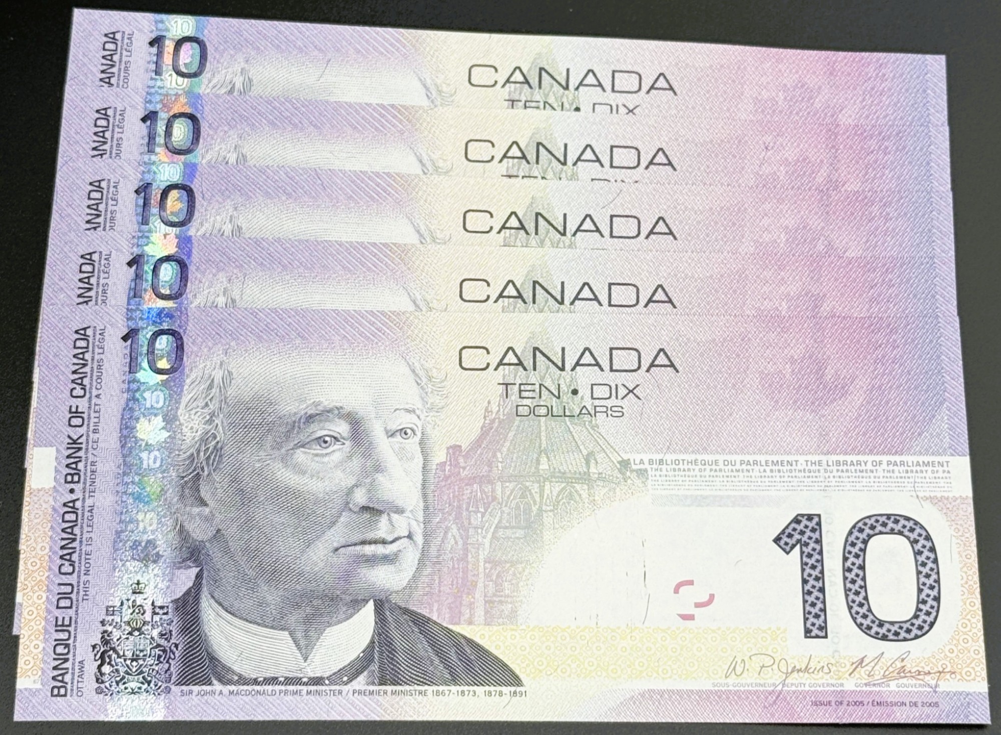 Banque du Canada – 10 Dollars 2005 – 5 Consécutifs – Jenkins/Carney – Préfixe BFA – UNC