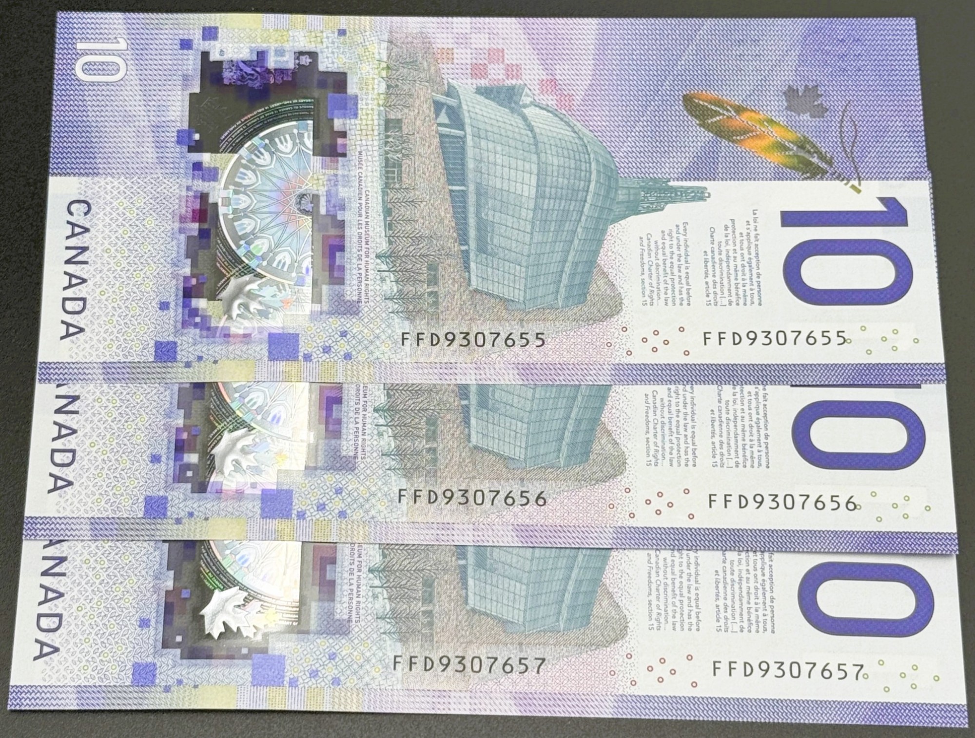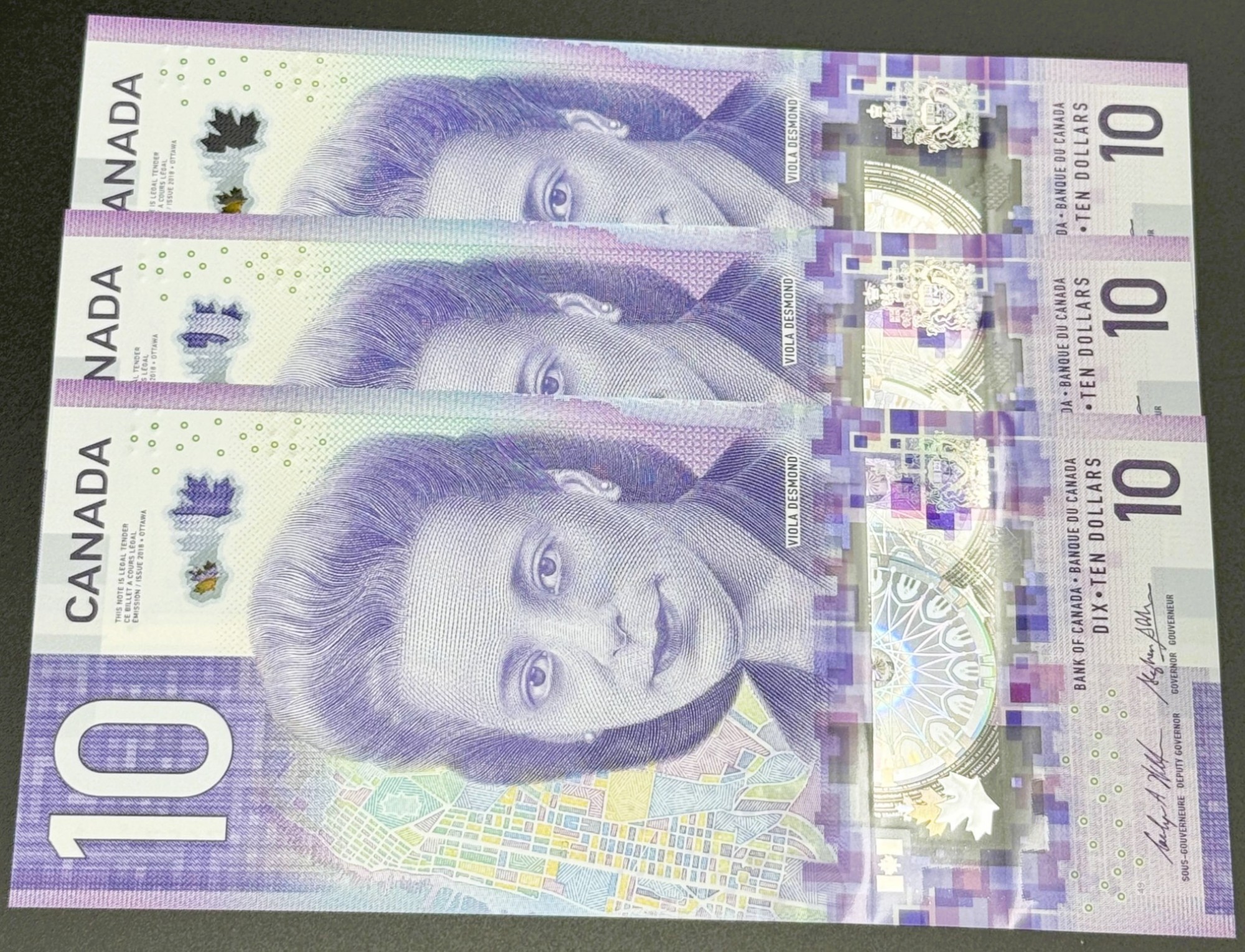 Banque du Canada – 10 Dollars 2018 – 3 Consécutifs – Macklem/Poloz – Préfixe CDB – UNC