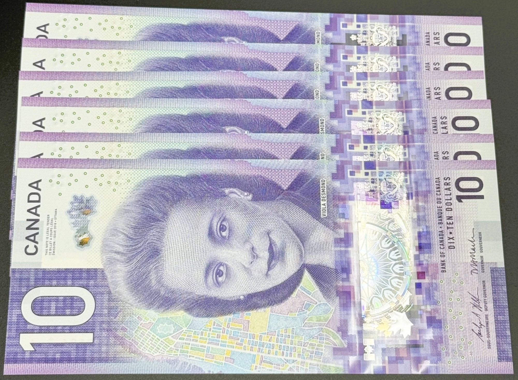 Banque du Canada – 10 Dollars 2018 – 6 Consécutifs – Wilkins/Macklem – Préfixe FFF – UNC