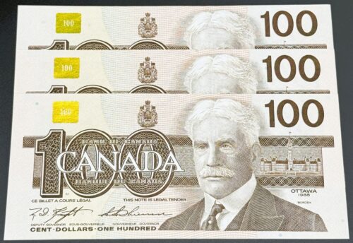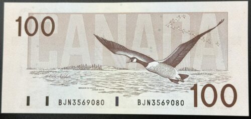 Banque du Canada – 100 Dollars 1954 – 2 Consécutifs – Beattie/Rasminski – Préfixe BJ – UNC63 – BC-43b