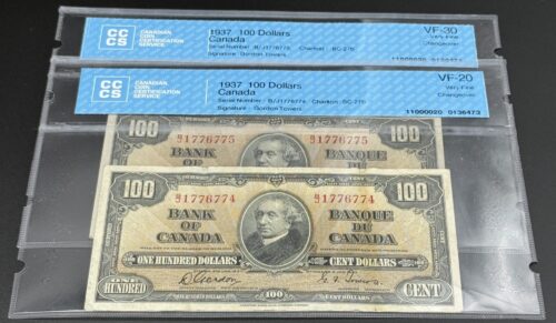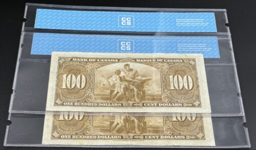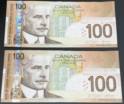 Cet exemplaire du billet de 100 dollars canadiens de 1988, portant les signatures de Knight et Thiessen, le préfixe BJN et classé UNC, appartient à la série des « Oiseaux du Canada », marquant une modernisation notable du design et des dispositifs de sécurité. Le recto présente l’effigie de Sir Robert Borden dans une composition sobre aux teintes brunes, tandis qu’au verso figure une Bernache du Canada en vol, survolant un plan d’eau bordé de forêts, avec un motif de fond évoquant la flore canadienne. Grâce à son grade UNC, l’exemplaire offre une fraîcheur intacte et illustre pleinement l’esthétique nette et naturaliste de cette émission.
