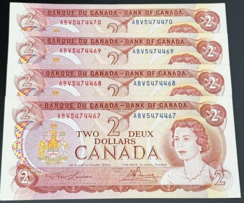Banque du Canada – 2 Dollars 1974 – 2 Consécutifs – Crow/Bouey – Préfixe ARC – UNC
