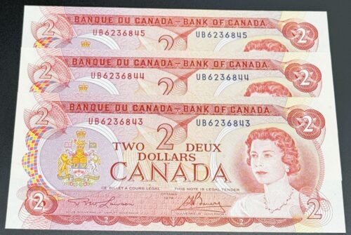 Banque du Canada – 2 Dollars 1974 – 3 Consécutifs – Crow/Bouey – Préfixe ARE – UNC