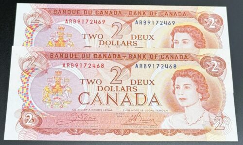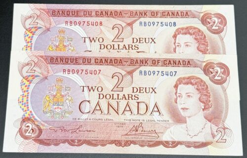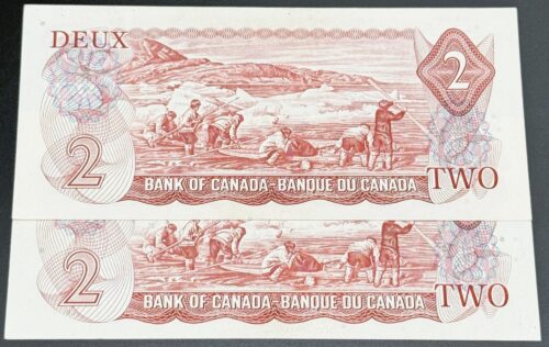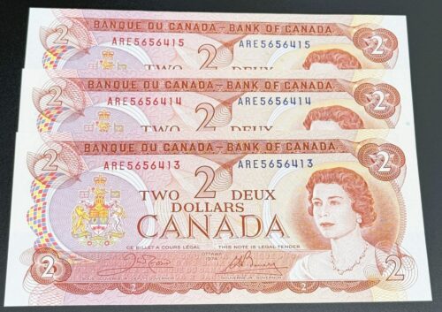 Cet exemplaire du billet de 2 dollars canadien de 1986, portant les signatures de Thiessen et Crow, le préfixe BUN et classé AU, appartient à la série « Oiseaux du Canada », marquant une modernisation importante du design et des dispositifs de sécurité. Le recto présente l’effigie de la Reine Élisabeth II dans une composition épurée aux teintes rouges caractéristiques, tandis qu’au verso apparaît un couple de merles d’Amérique (American Robin) évoluant dans un champ d’herbes, dans une scène naturaliste finement gravée. Malgré une légère manipulation propre au grade AU, l’exemplaire conserve une fraîcheur notable et l’élégance recherchée de cette émission emblématique.