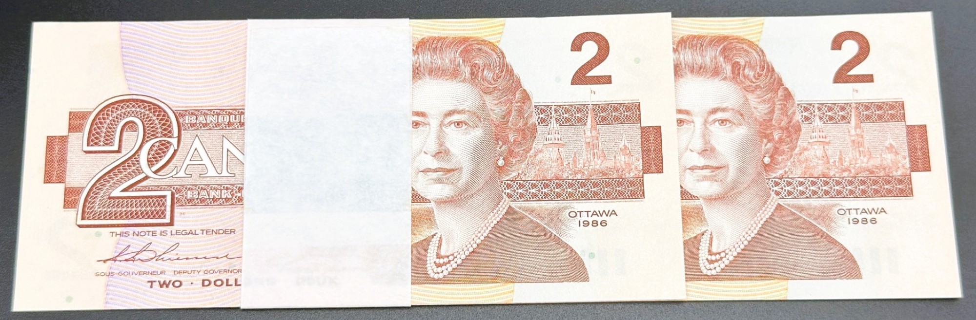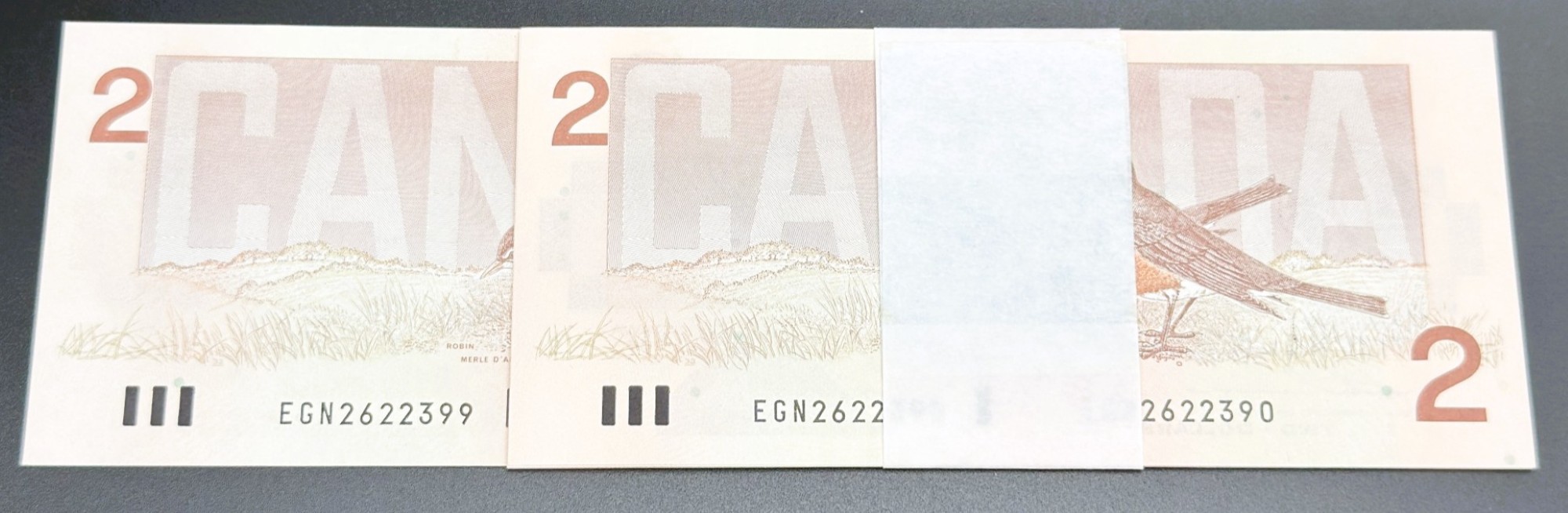 Banque du Canada – 2 Dollars 1986 – 10 Consécutifs – Thiessen/Crow – Préfixe – EGN – UNC