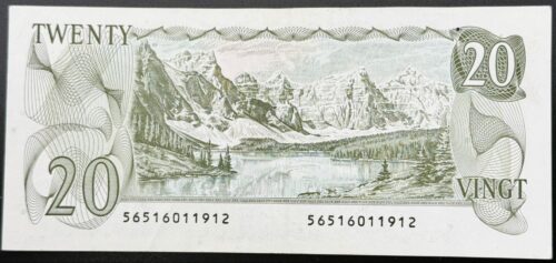 Cet exemplaire du billet de 20 dollars canadiens de 1979, portant les signatures de Thiessen et Crow classé VF/EF, appartient à la série multicolore, marquant une modernisation des teintes et des dispositifs de sécurité. Le recto présente l’effigie de la Reine Élisabeth II dans une composition épurée aux tons verts, tandis qu’au verso figure une vue du Moraine Lake, dans le parc national Banff, gravure emblématique de cette émission. Malgré l’usure légère propre au grade VF/EF, l’exemplaire conserve une très bonne présence et l’esthétique nette recherchée de cette série.