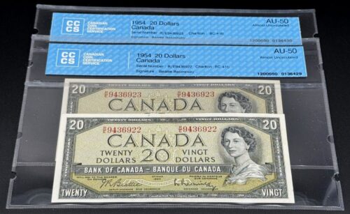 Cet exemplaire du billet de 20 dollars canadiens de 1979, portant les signatures de Thiessen et Crow classé VF/EF, appartient à la série multicolore, marquant une modernisation des teintes et des dispositifs de sécurité. Le recto présente l’effigie de la Reine Élisabeth II dans une composition épurée aux tons verts, tandis qu’au verso figure une vue du Moraine Lake, dans le parc national Banff, gravure emblématique de cette émission. Malgré l’usure légère propre au grade VF/EF, l’exemplaire conserve une très bonne présence et l’esthétique nette recherchée de cette série.