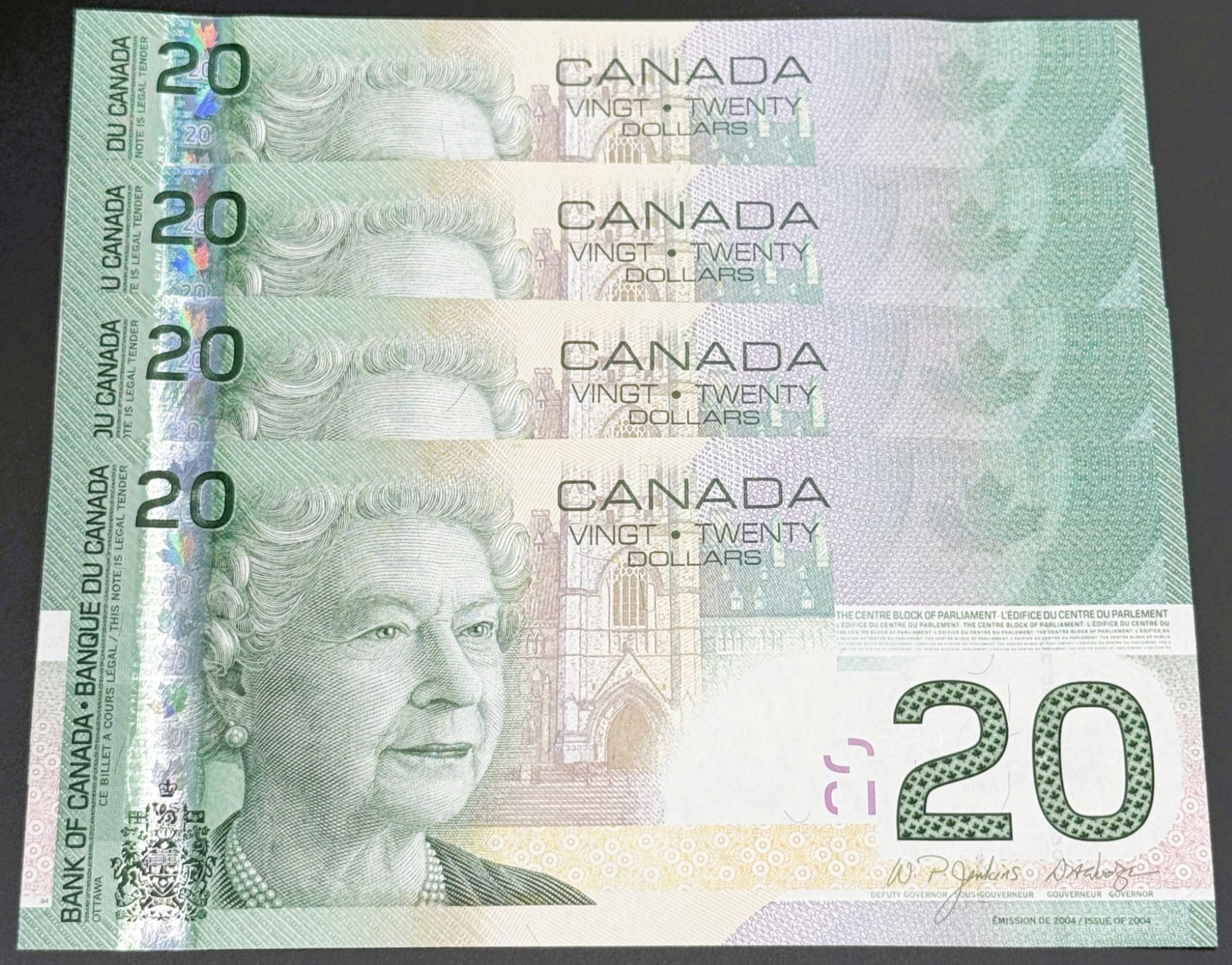 Banque du Canada – 20 Dollars 2004 – 4 Consécutifs – Jenkins/Dodge – Préfixe ALT – UNC