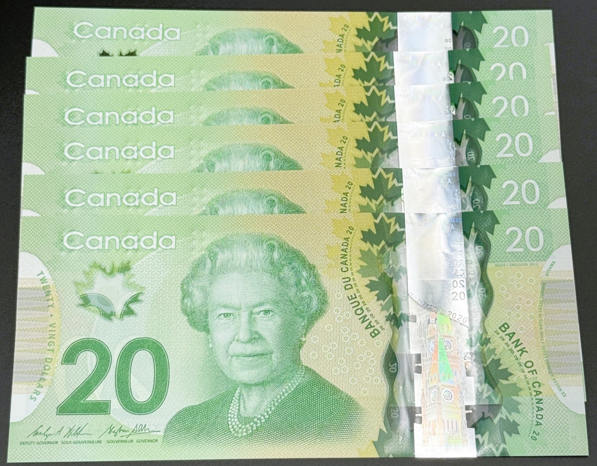 Banque du Canada – 20 Dollars 2012 – 6 Consécutifs – Wilkins/Poloz – Préfixe FYU – UNC