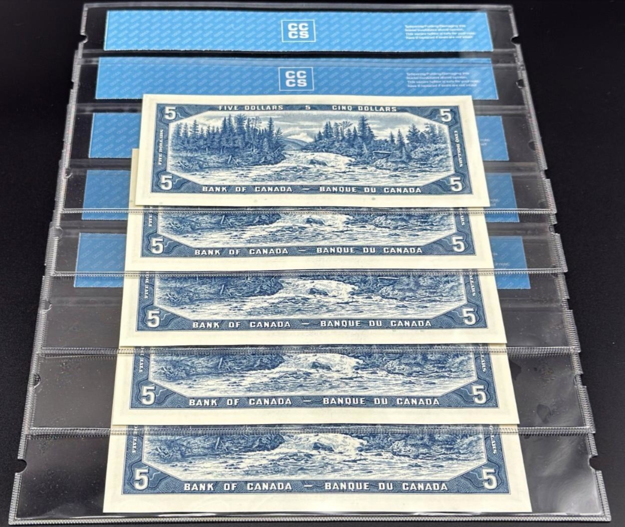 Banque du Canada – 5 Dollars 1954 – 5 Consécutifs – Beattie/Rasminski – Préfixe PS – UNC64 – BC-39b