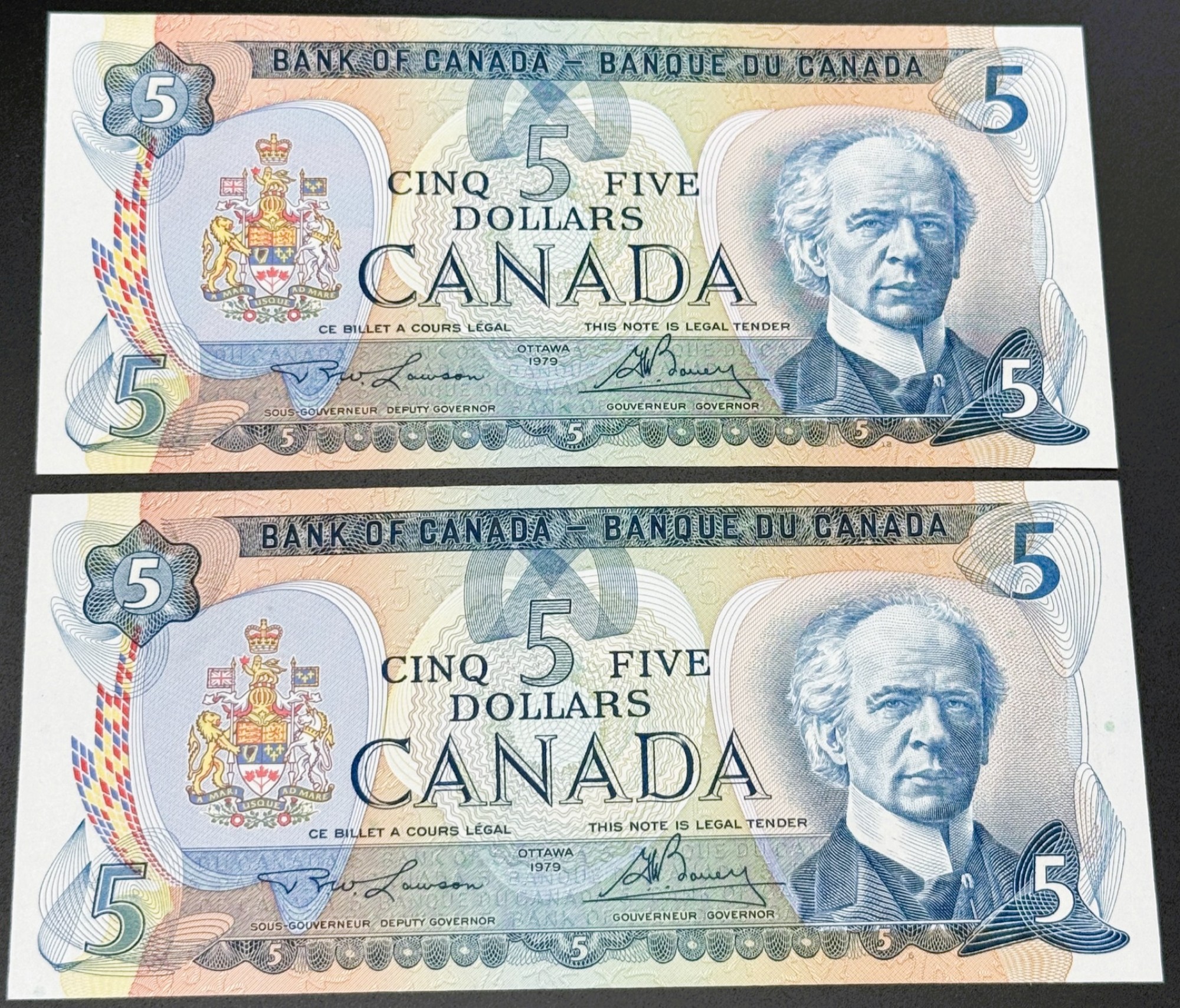 Banque du Canada – 5 Dollars 1979 – 2 Consécutifs – Lawson/Bouey – UNC