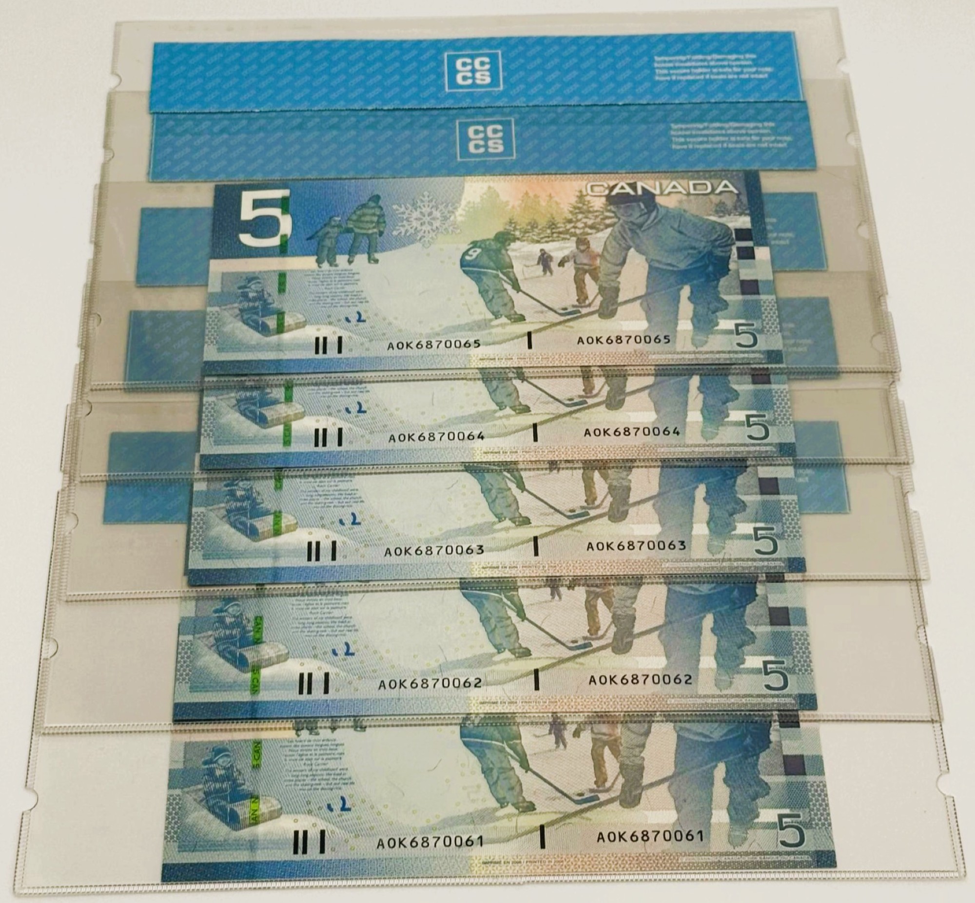 Banque du Canada – 5 Dollars 2006 – 5 Consécutifs – Jenkins/Dodge – Préfixe AOK – UNC64 – BC-67a
