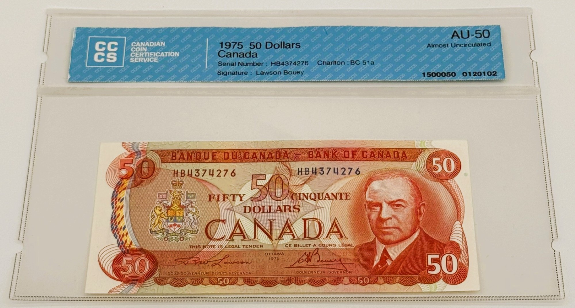 Banque du Canada – 50 Dollars 1975 – Lawson/Bouey – Préfixe HB – AU50 – BC-51a
