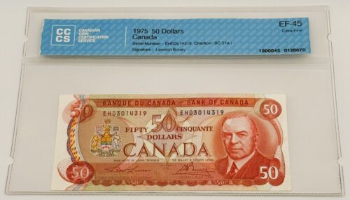 Banque du Canada – 50 Dollars 1975 – Remplacement – Radar à 4 chiffres – Crow/Bouey – Préfixe EHX – EF45 – BC-51bA