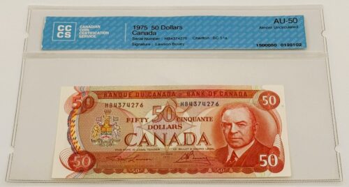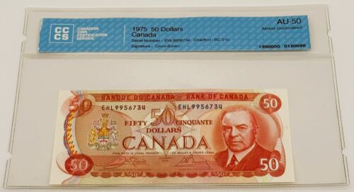 Banque du Canada – 50 Dollars 1975 – 3 Consécutifs – Crow/Bouey – Préfixe EHM – EF45 – BC-51b