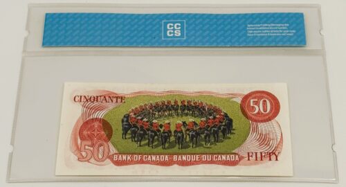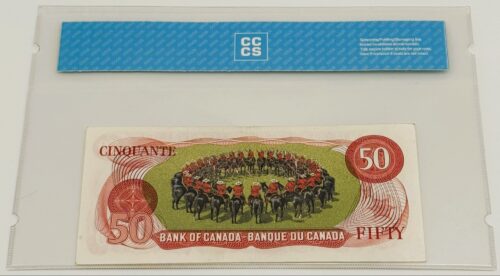 Ensemble exceptionnel composé de quatre billets consécutifs de 50 dollars 1975, portant le préfixe EHF, une séquence recherchée pour sa cohérence et sa survivance intacte; signés Crow / Bouey. Ces billets présentent le portrait solennel de William Lyon Mackenzie King, accompagné au revers du célèbre Carrousel de la Gendarmerie royale du Canada, une scène équestre emblématique gravée avec une finesse remarquable et devenue l’un des visuels les plus appréciés de toute la série multicolore. La présence de numéros consécutifs renforce l’attrait patrimonial de l’ensemble, témoignant d’un parcours bancaire préservé et d’une homogénéité rare; gradés GEM65. Ils offrent un papier immaculé, des marges équilibrées, une impression nette et une fraîcheur de fabrication exceptionnelle pour cette coupure souvent rencontrée en états plus modestes. Un quatuor prestigieux, élégant et parfaitement assorti, idéal pour enrichir une collection avancée de la série multicolore.