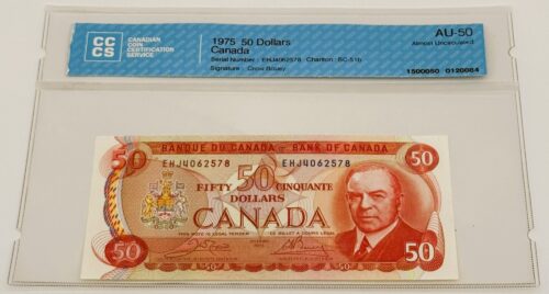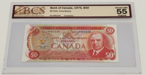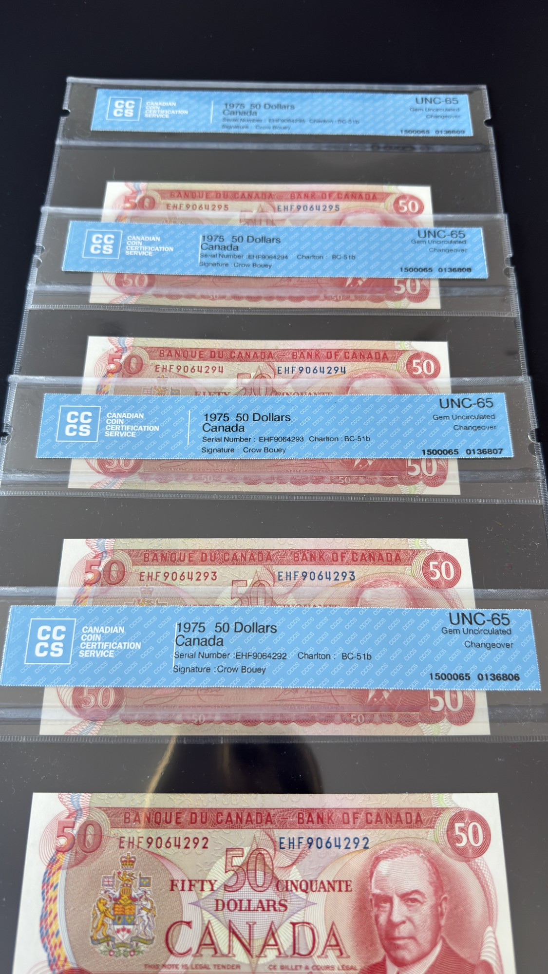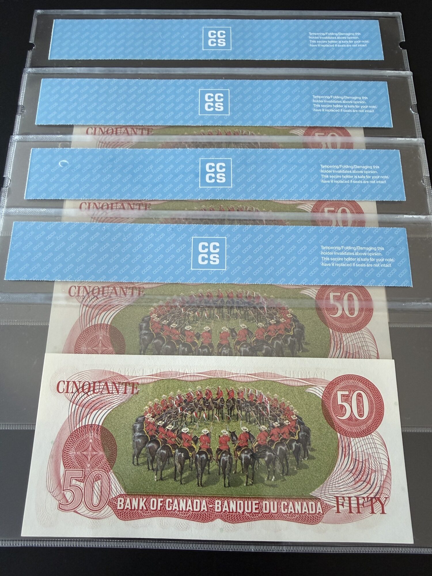 Banque du Canada – 50 Dollars 1975 – 4 Consécutifs – Crow/Bouey – Préfixe EHF – GEM65 – BC-51b