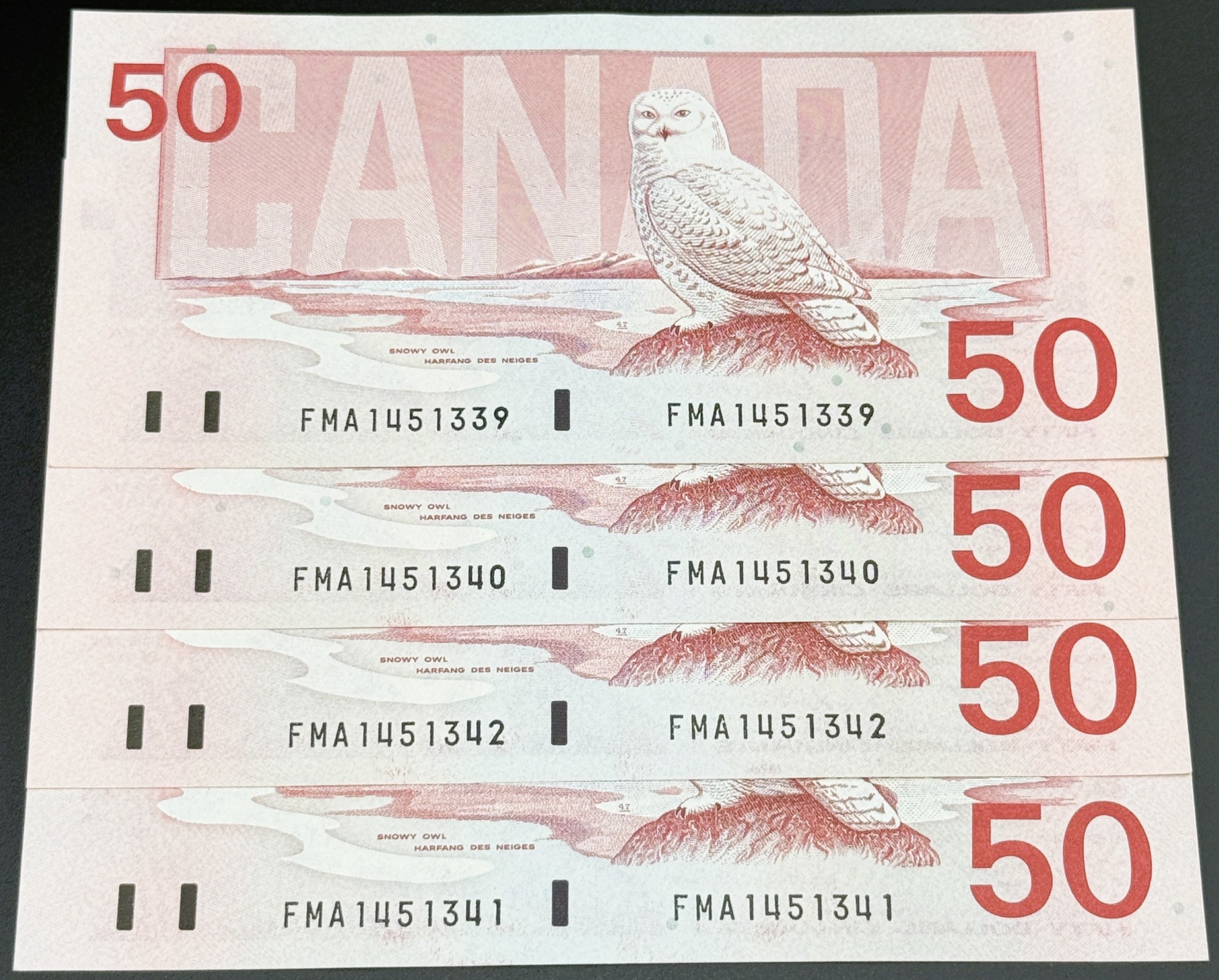 Banque du Canada – 50 Dollars 1988 – 4 Consécutifs – Knight/Dodge – Préfixe FMA – UNC