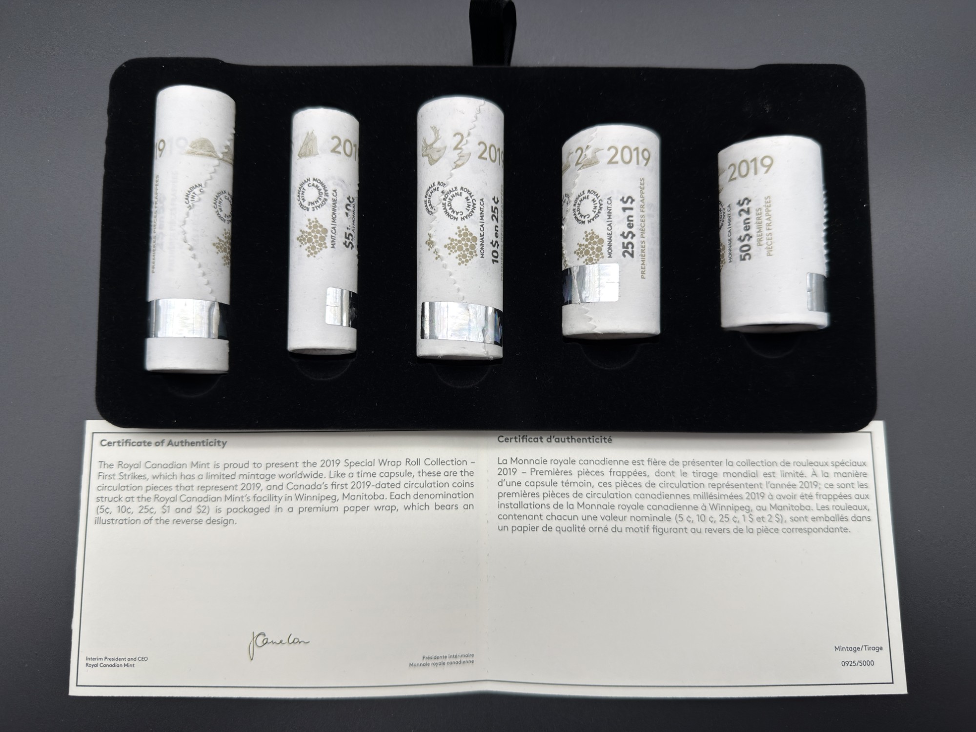 Collection spéciale de rouleaux de pièces de monnaie « Première frappe » du Canada – 2019