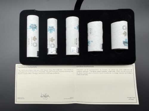 Émise en 2017 pour célébrer le 150ᵉ anniversaire de la Confédération, cette Collection spéciale de rouleaux d’emballage “Mon Canada, mon inspiration” constitue un artéfact matériel majeur de la numismatique canadienne contemporaine. Le coffret réunit les rouleaux officiels des pièces commémoratives de circulation de 2017, chacune issue d’un concours national où les Canadiens ont proposé et choisi les motifs représentant leur vision du pays. Les versions colorées, particulièrement recherchées, mettent en valeur des thèmes tels que la diversité, la nature, l’innovation et l’identité culturelle, magnifiés par une application chromatique précise et durable. Présentés dans un emballage officiel scellé, ces rouleaux incarnent la volonté de la Monnaie royale canadienne de préserver les premières frappes commémoratives d’une année historique, offrant une survivance d’une rareté structurelle élevée. Ensemble, ils forment un ensemble patrimonial moderne, témoin d’une célébration nationale où l’art, la participation citoyenne et l’excellence de fabrication se rejoignent pour créer l’une des collections les plus recherchées de la décennie.
