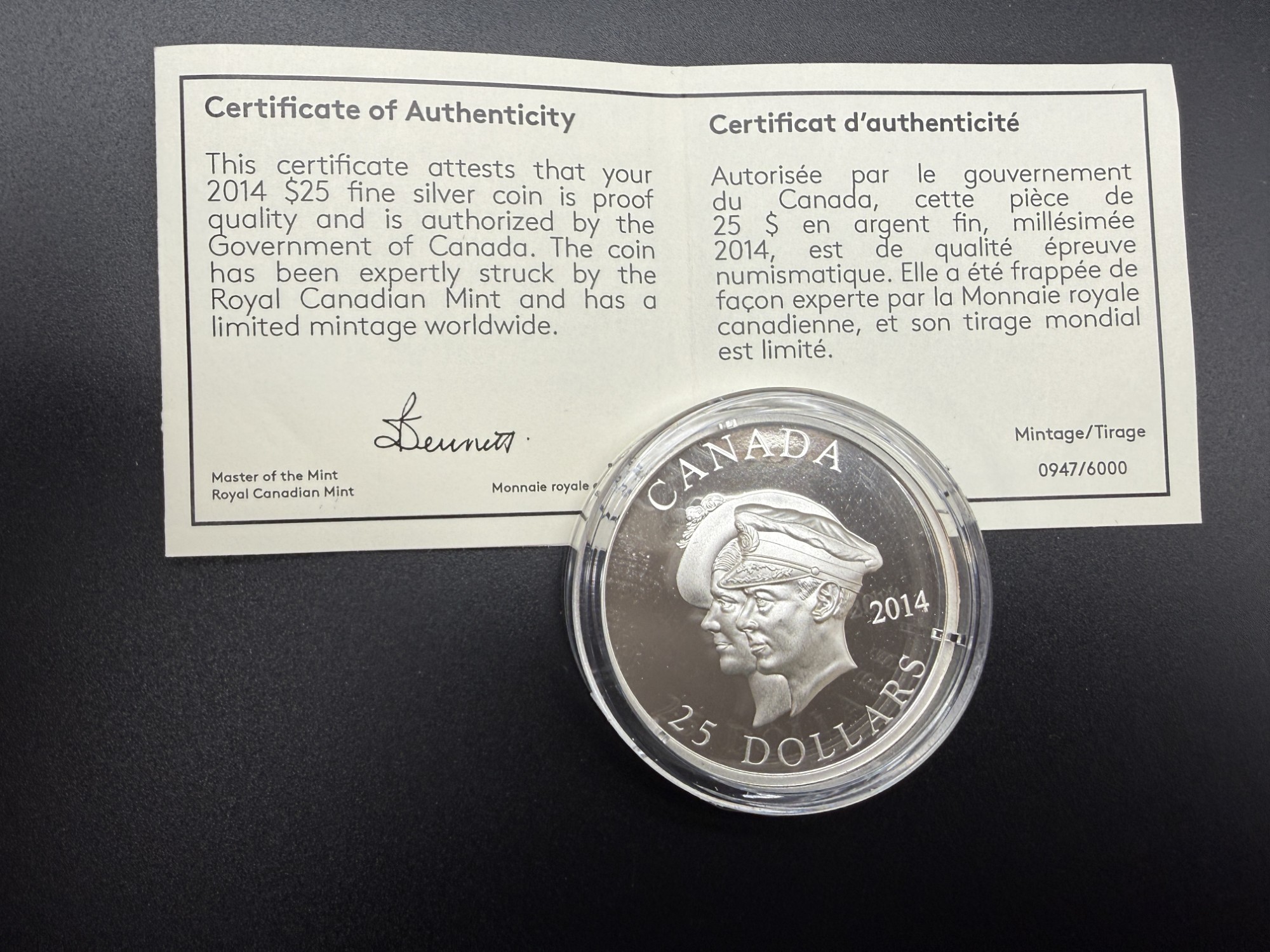 Pièce de 25 dollars – Canada 2014 – 75ᵉ anniversaire de la première visite royale