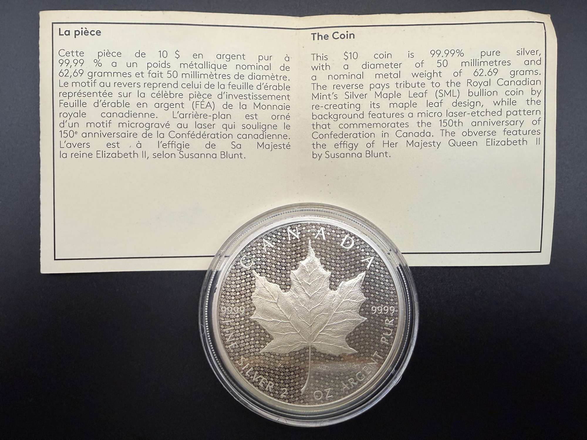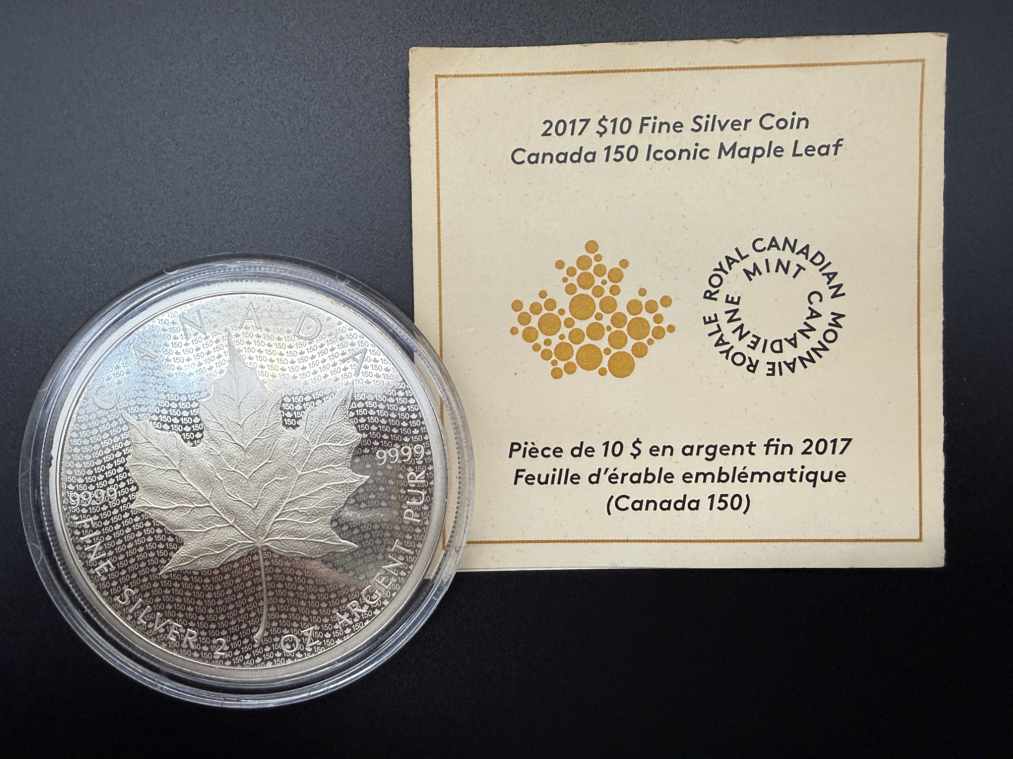 Pièce de 2 oz en argent pur – “Feuille d’érable emblématique – Canada 150’’ – 2017