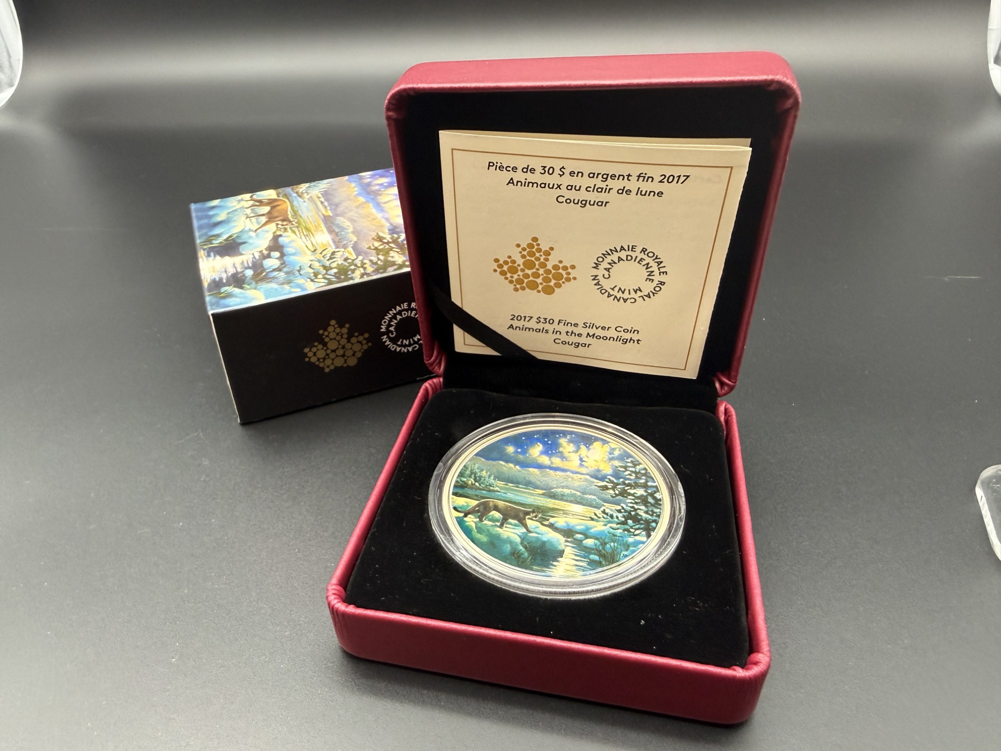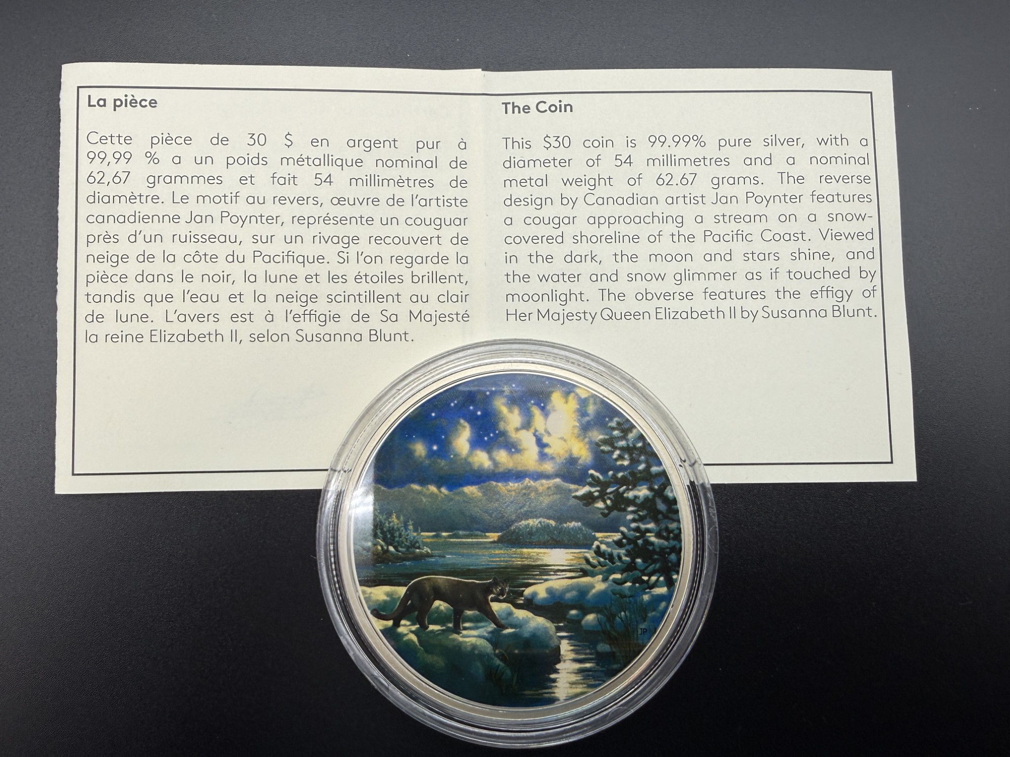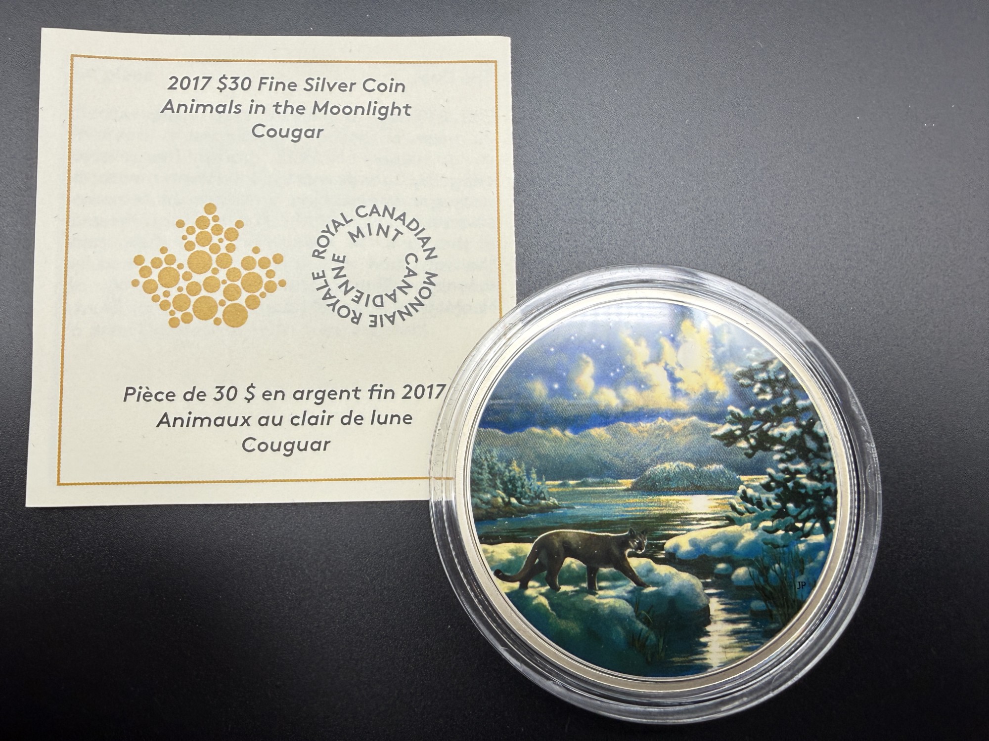 Pièce de 30 dollars – Canada 2017 – Animaux au clair de lune : Le couguar
