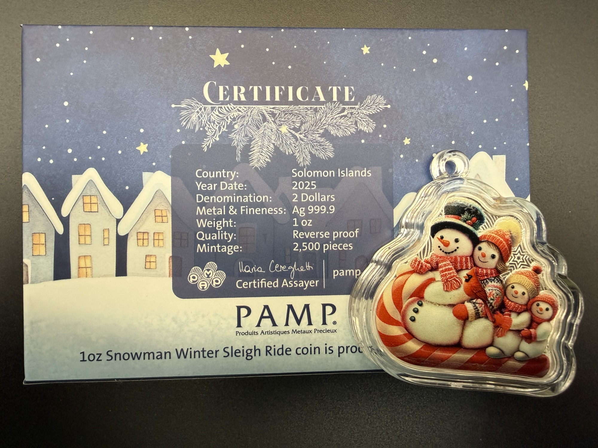 Pièce de 2 dollars – Îles Salomon 2025 – Snowman Winter Ride (PAMP Suisse)